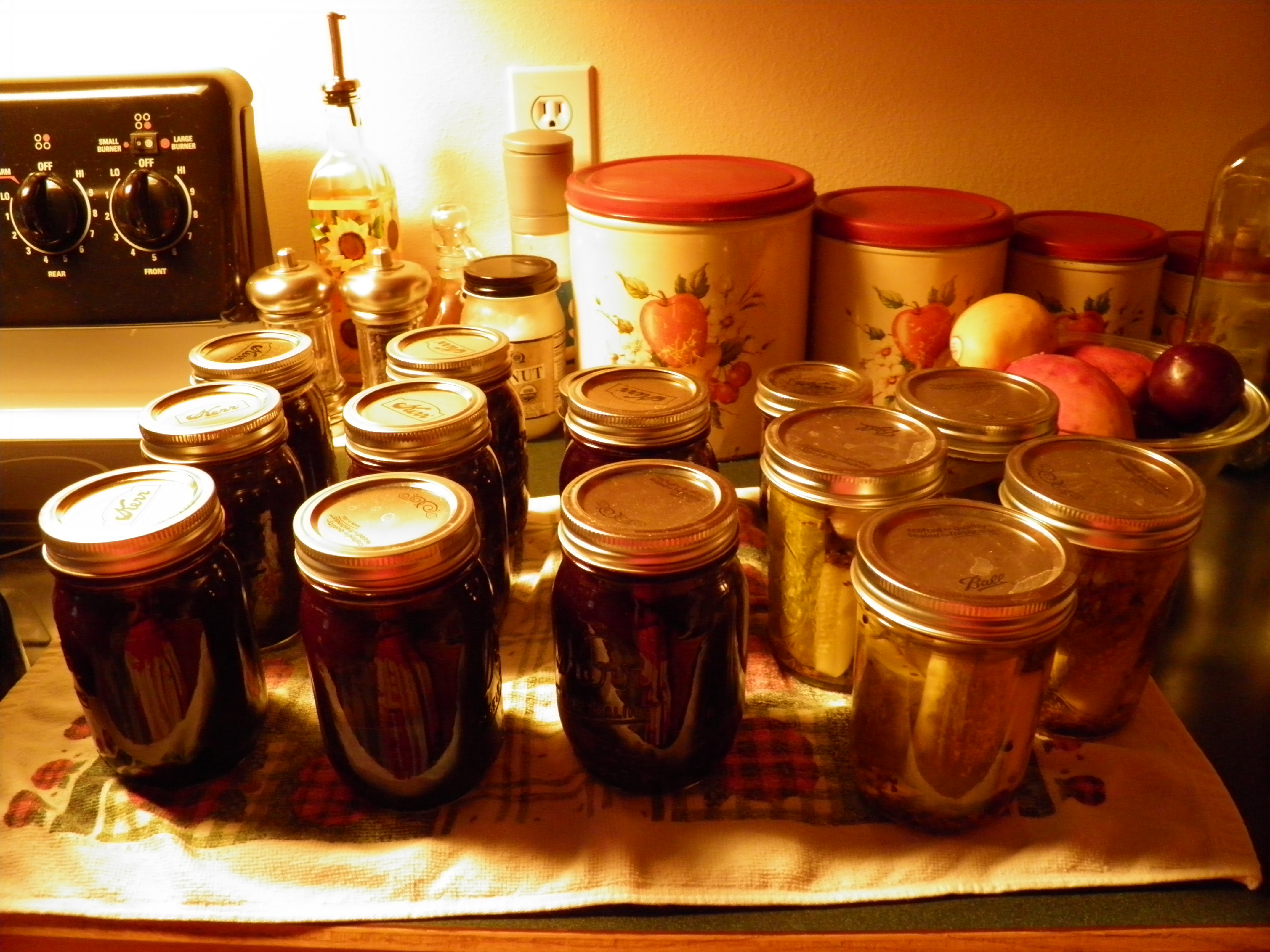I asked my husband to build some more raised beds from the redwood and juniper fence posts that we’d pulled from old cross-fencing on the property. The ends had rotten through, but most of the posts were still sound. We’d been building raised beds in the garden, a few every year for several years, to make it easier for me to do the growing I love, but we were almost out of materials and didn’t want to buy brand new posts. So he built two low beds that I could pick by sitting on the lowest rails, and I filled them with about 60 strawberry plants from my original patch which had grown together so badly I couldn’t tell the June-bearers from the ever-bearers. Of course, they promptly began to run down the sides of the raised beds and root in the ground. But now I can have Dennis till the area around the beds when necessary. I have also been giving away and selling off the extras locally to people who want to start their own strawberry patches.