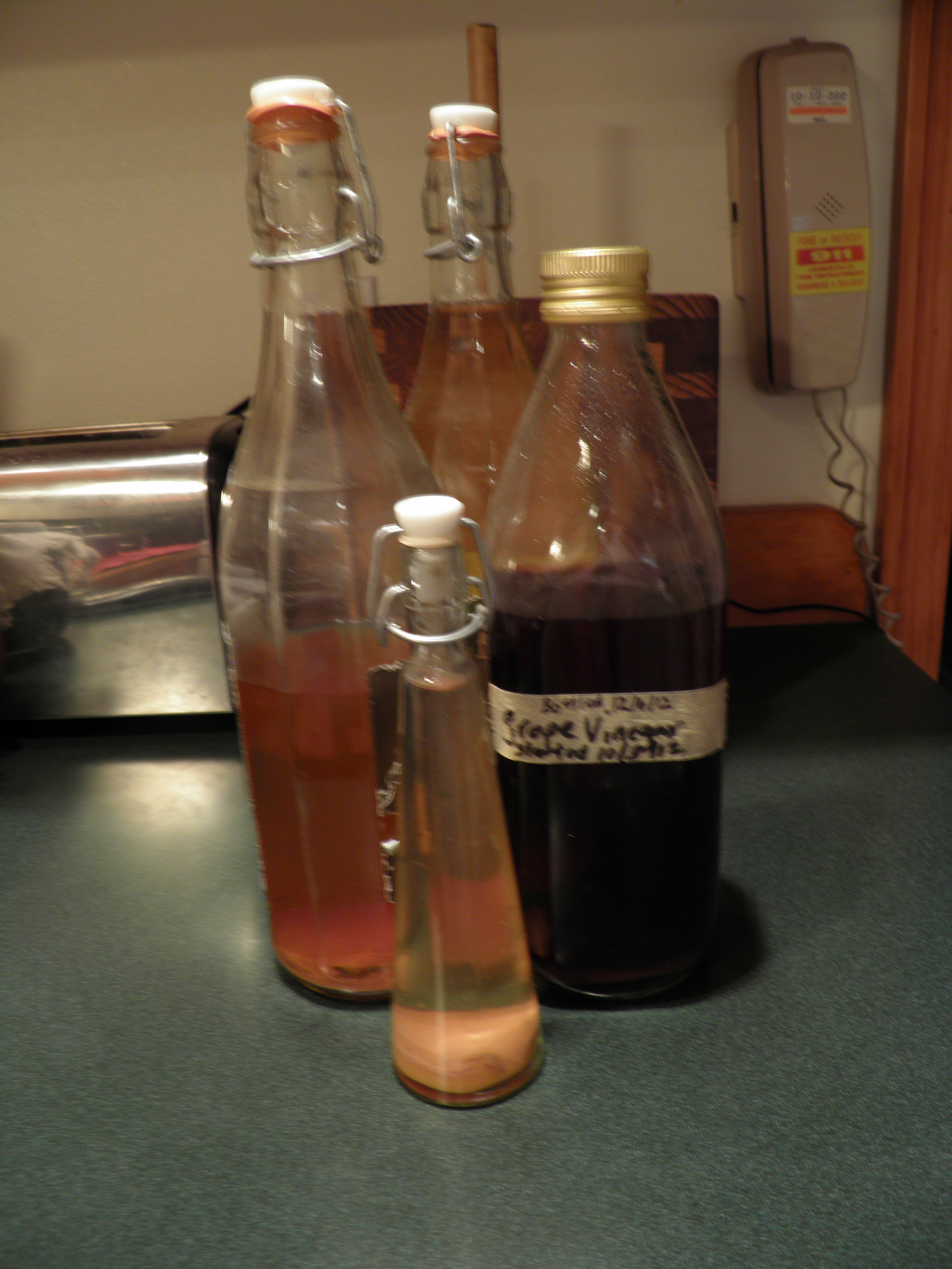 I would add one thing to Rebecca’s three-in-one pear recipes to make them four-in-one. Pear vinegar! Yes, save those pear peelings. Let them age and brown in a bowl (covered if you have a fruit fly farm in your kitchen like I currently do) while you work with the pears. Then, when you’re done with everything else, put your pear peelings (and cores if they aren’t wormy) in a large, clean jar, and cover the peels with distilled water. Don’t overfill the jar! Pears ferment quickly, so leave several inches of head space. Put the jar on a plate in case of spillage while fermenting. Cover the mouth of the jar with some breathable fabric, secured with a rubber band or twine, to keep the fruit flies out, and stir every day. In 6-8 weeks, you’ll have pear vinegar. See my previous post, “Waste Not, Want Not,” for more instructions for making fruit scrap vinegars.