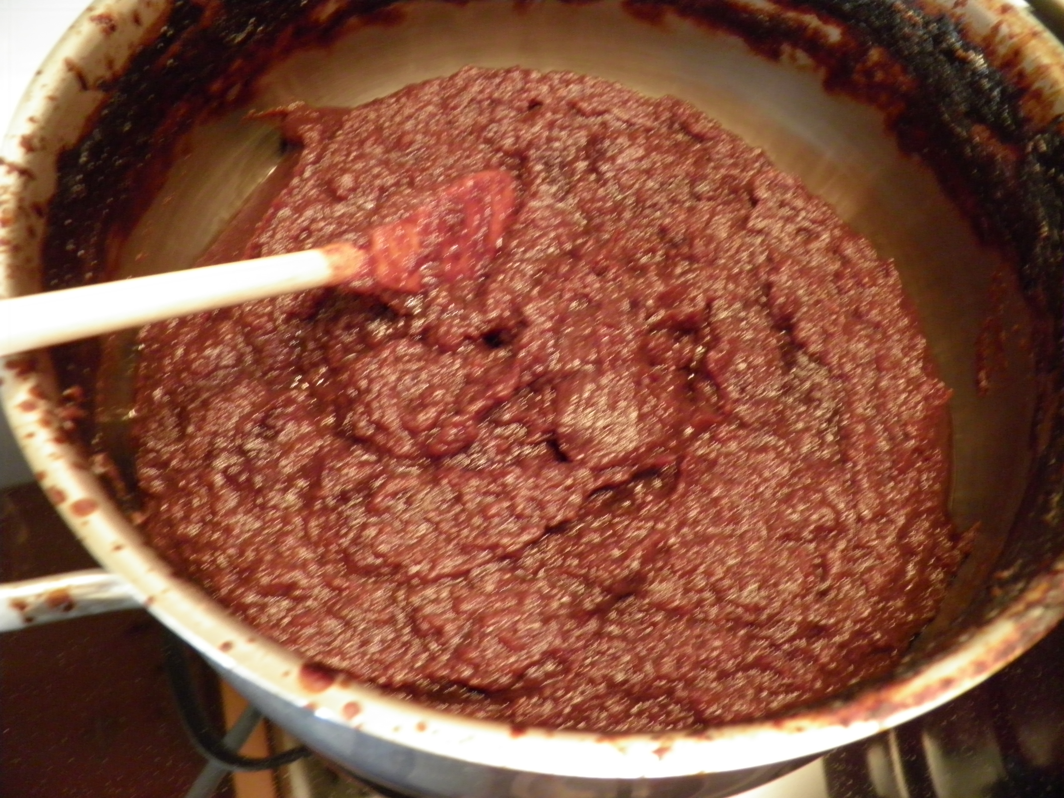 Don’t turn the heat under the pot on high. The pears will scorch to the bottom. Use a medium heat and stir frequently, as in about every five minutes. If your pears aren’t juicy, you may need to add more liquid, but don’t add any more than is absolutely necessary to keep your pears from sticking, because for pear butter, you’ll have to cook out all the liquid you add, and then some, to get the thick, rich consistency of a fruit butter.