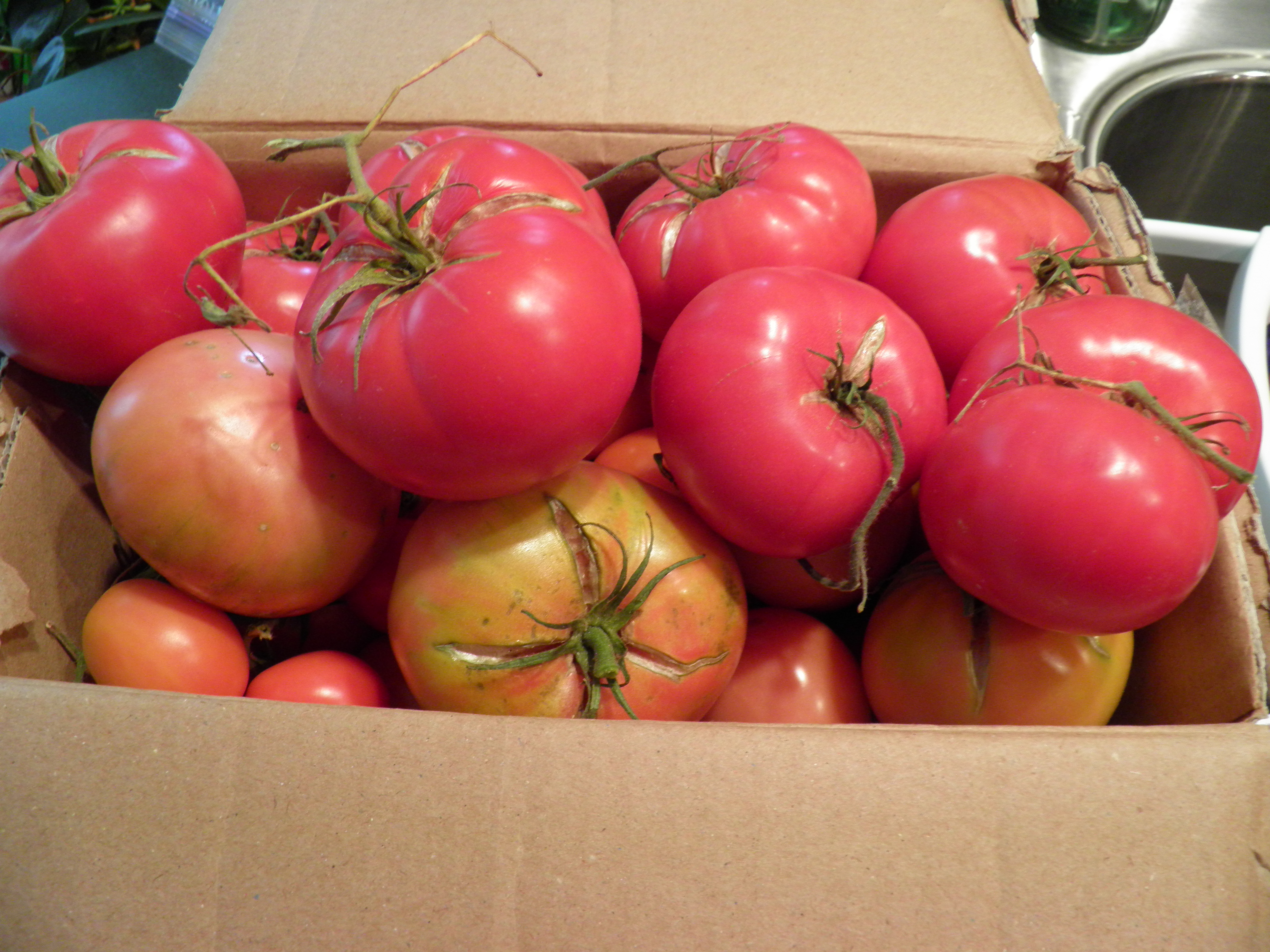 I could have titled this post “What To Do With Box-Ripened Tomatoes.” Fall presents gardeners with something of a quandary: what to do with all the green fruit that had to be gathered before the first frost. By this time, most of us in the parts of the country that experience winter have picked our green tomatoes. We’ve boxed them, and we’ve probably mostly dealt with them. A couple of weeks ago, I wrote about what I did with my green tomatoes this year. But there are always some we let ripen in the box.