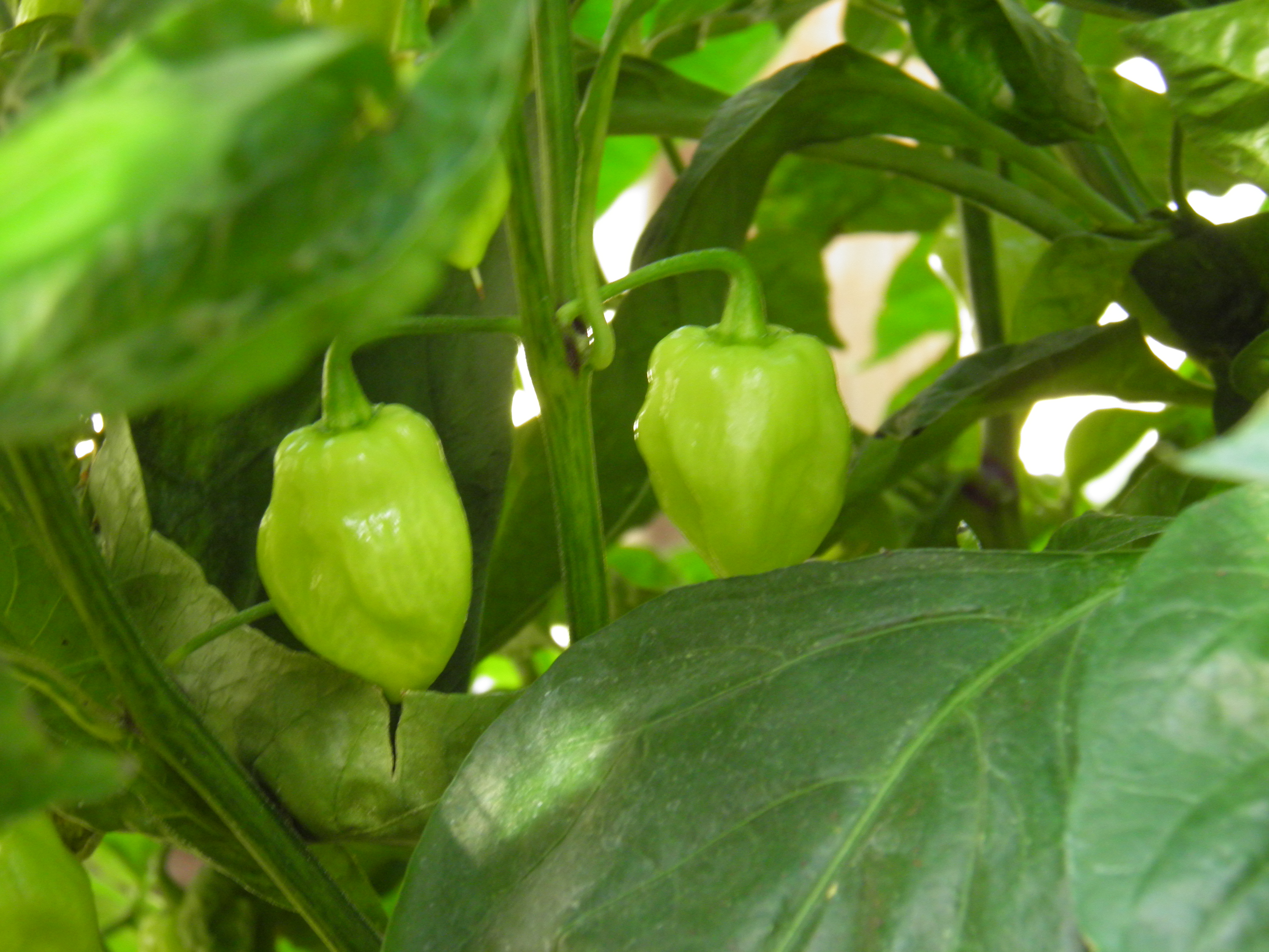 This year, with red hot sauce in mind, I actually planted habaneros in my greenhouse. I started them from seed in April. I should have started them in early March. They are very slow to sprout and then to grow. They didn’t even start blooming until August, so I knew that it was unlikely I would get ripe peppers. When my boxed green tomatoes started to get ripe, I checked my habaneros. There were some small green peppers just starting to turn yellowish.