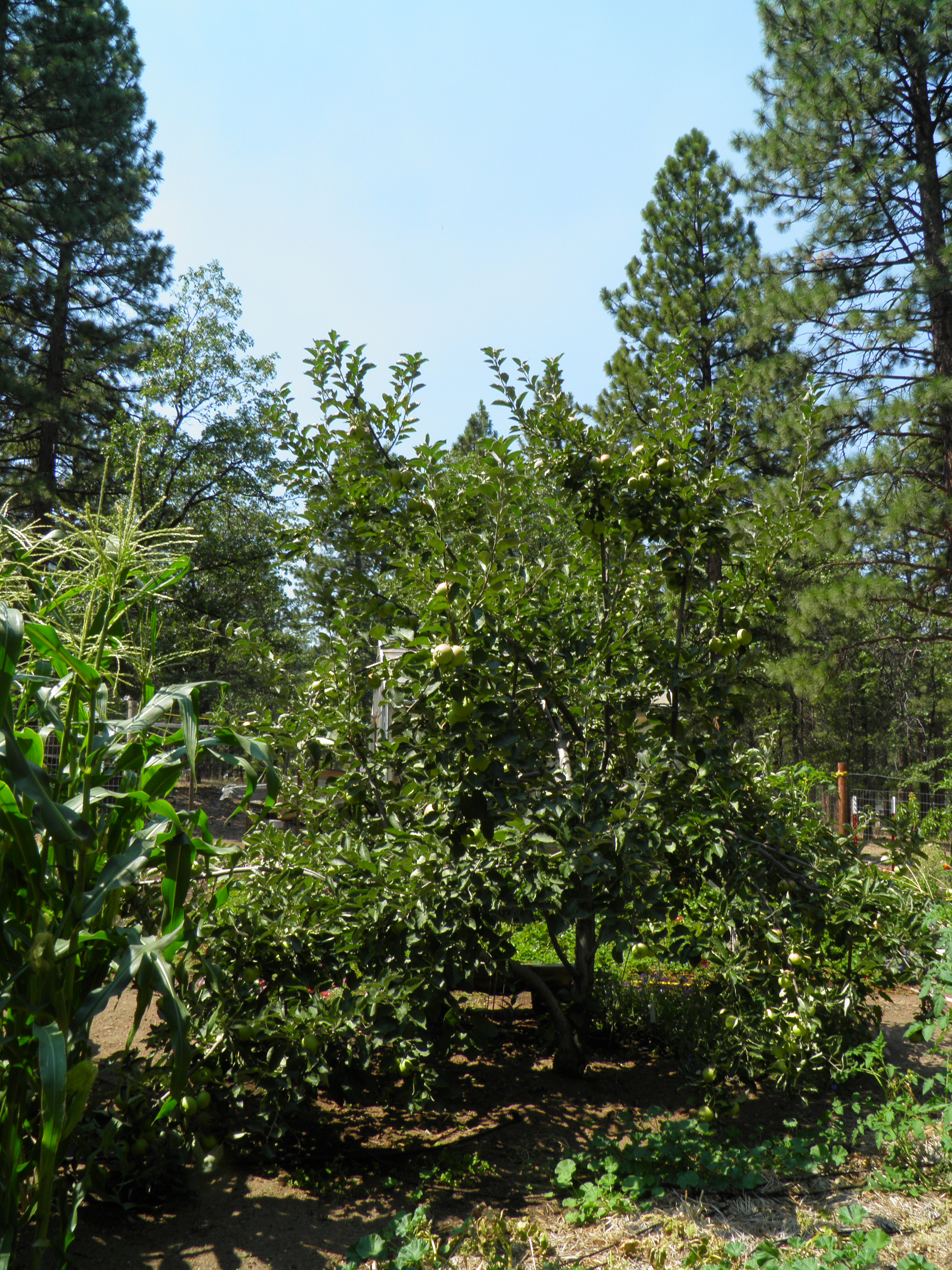 And the little apple tree is loaded. I didn’t expect so many apples after the fairly severe pruning we gave it late this spring, but the tree seems to be liking its new haircut.