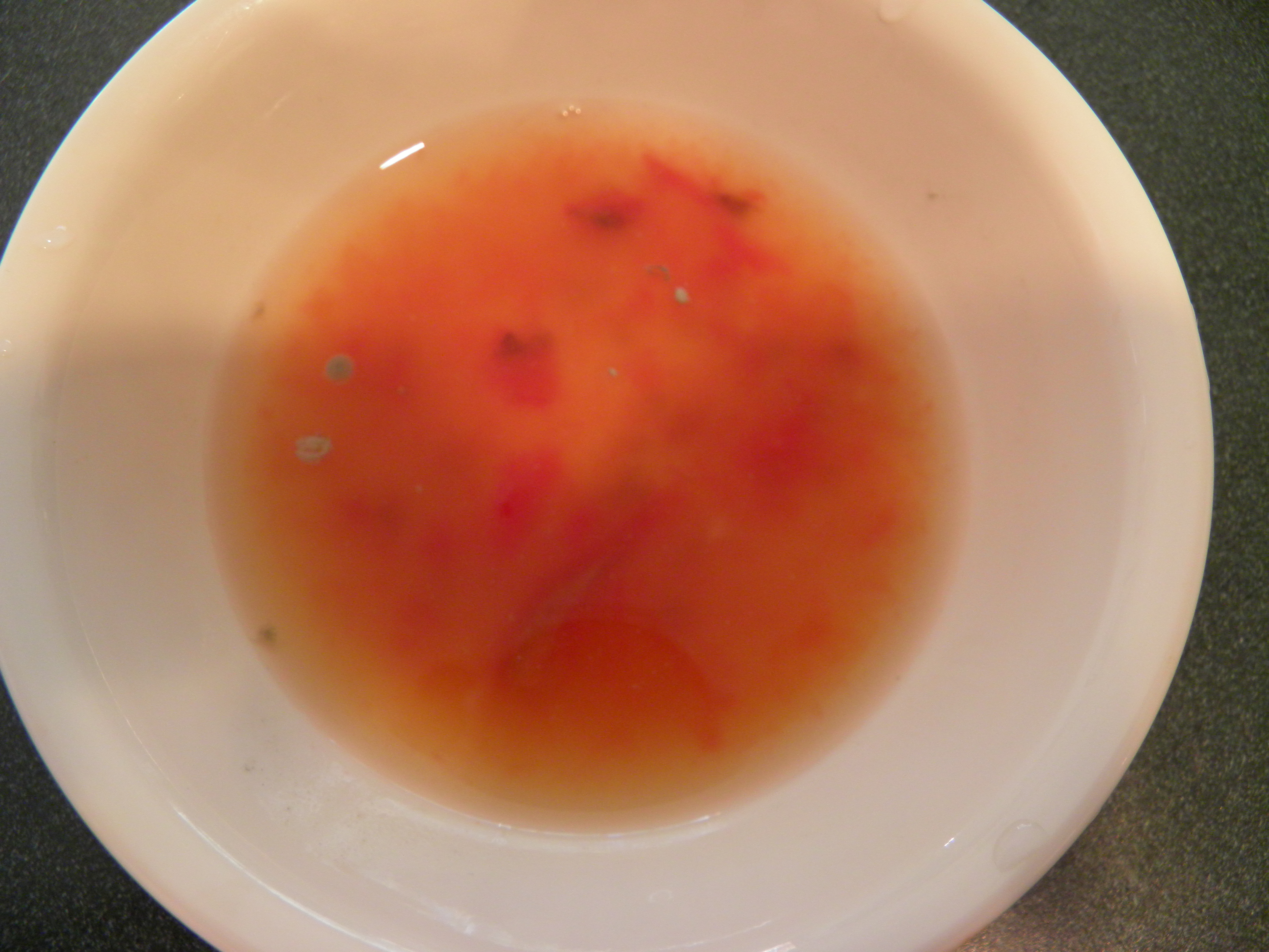 There usually one tomato that’s gotten a bit over-ripe on me, so that’s the one I harvest seeds from. As I’m cutting up the tomato, I just use my knife to scrape out a dozen or so seeds, however many I want, into a small bowl. Then I cover the seeds with a couple of tablespoons of water, cover the bowl with plastic wrap, label the plastic wrap with the type of tomato and the date, and set the bowl aside for a few days and wait for it to ferment.