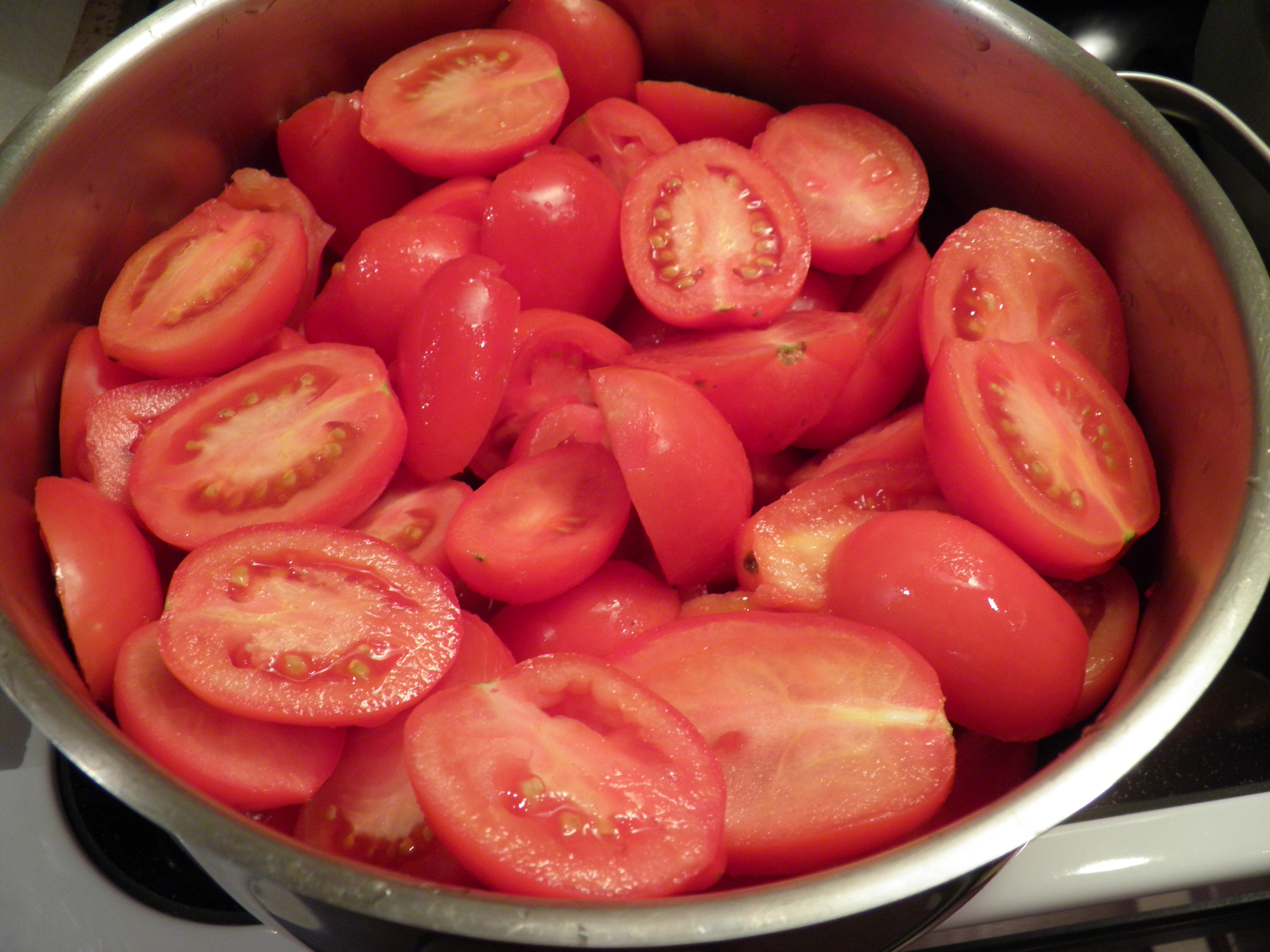 I’m working now to process the tomatoes I froze during the summer and the ones I box-ripened after the last fall picking. I’m making Italian Red Sauce. People know this sauce by different names. Italians call it marinara. It’s marketed in jars as pasta and pizza sauce. Many of us who lack Italian heritage just call it spaghetti sauce. It doesn’t matter what you call it. It matters that you make it. Here’s how, although this is more about a technique than a recipe. (Lots of parentheticals in this one.)