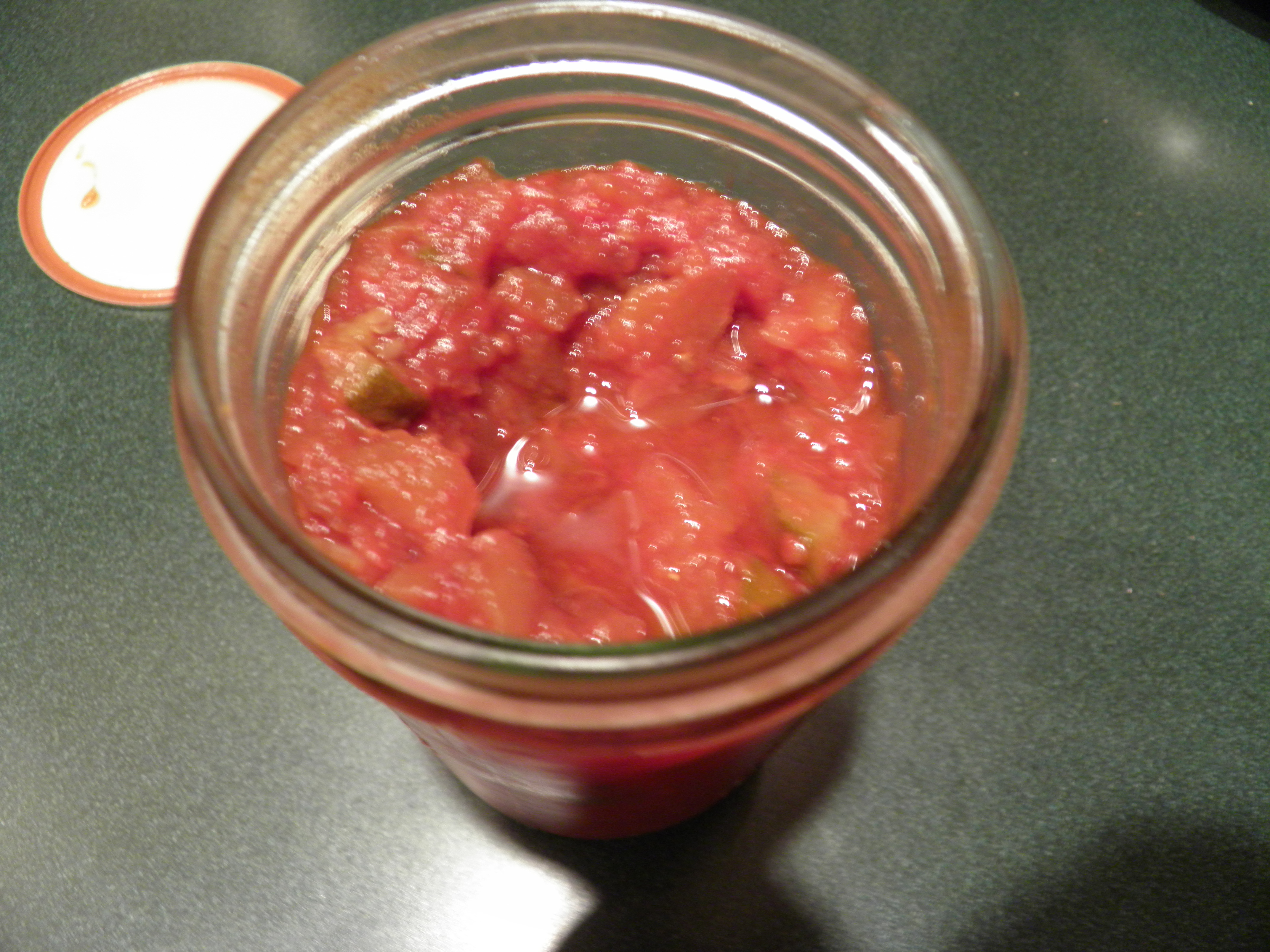 As you can see from the pictures, I only had 3 chicken thighs, and there was enough sauce for several more thighs. I wish I’d had more! I served this with red quinoa instead of the traditional rice, with a good dollop of the tomato-apple chutney I made last fall on the side.