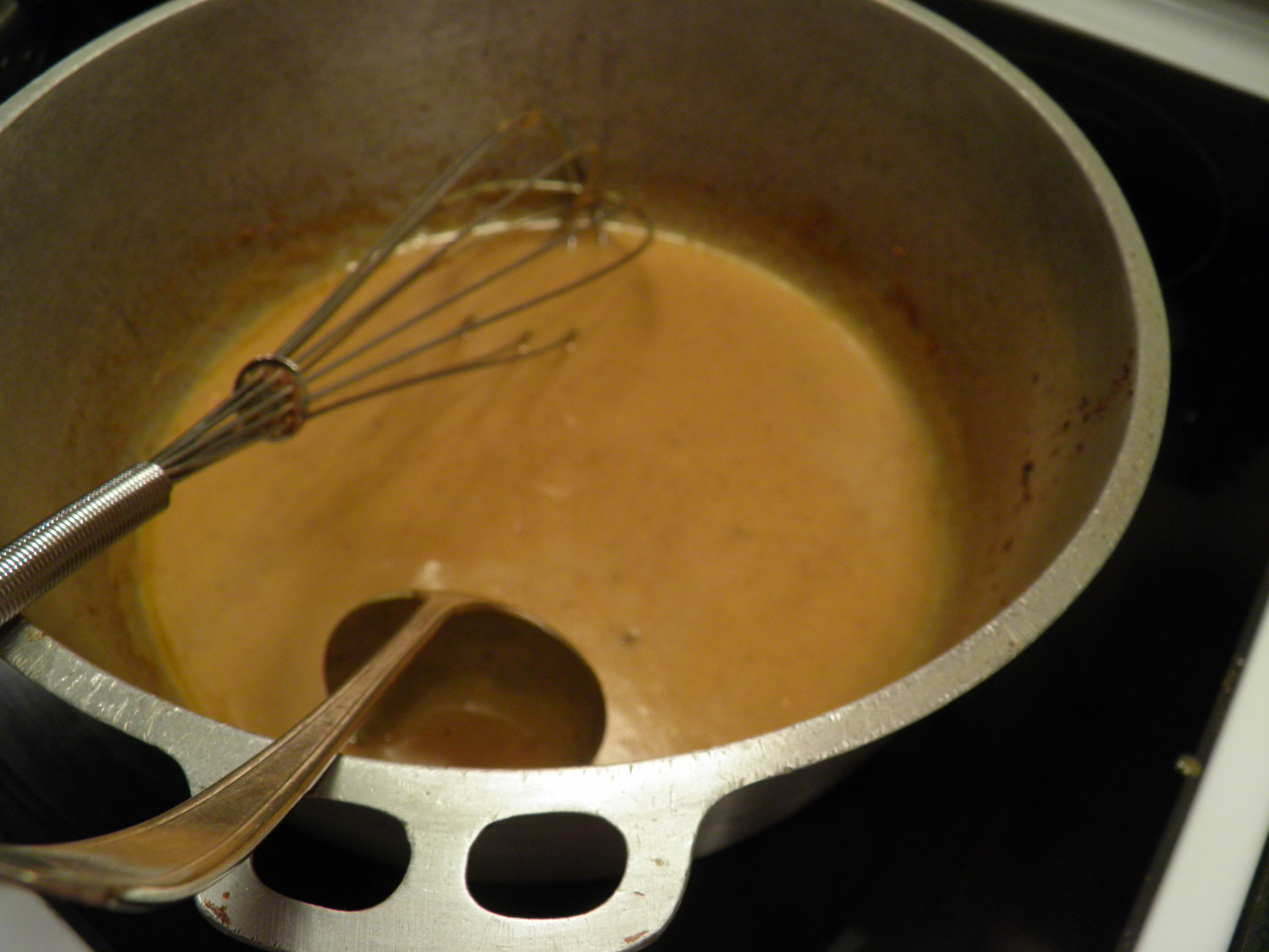 Remove chicken from pan, pour off fat. (Lower fat version: remove skin from chicken thighs before browning in coconut oil. There should be no need then to pour off fat from pan, since the coconut oil is healthy.) Pour 1 can of light coconut milk into Dutch oven, heat to boiling, stirring up the spices from the bottom of the pan. Place chicken back into pan, cover with lid, and braise in 375 degree oven for 75-90 minutes, or until chicken is tender enough to pull away from the bone with a fork.
