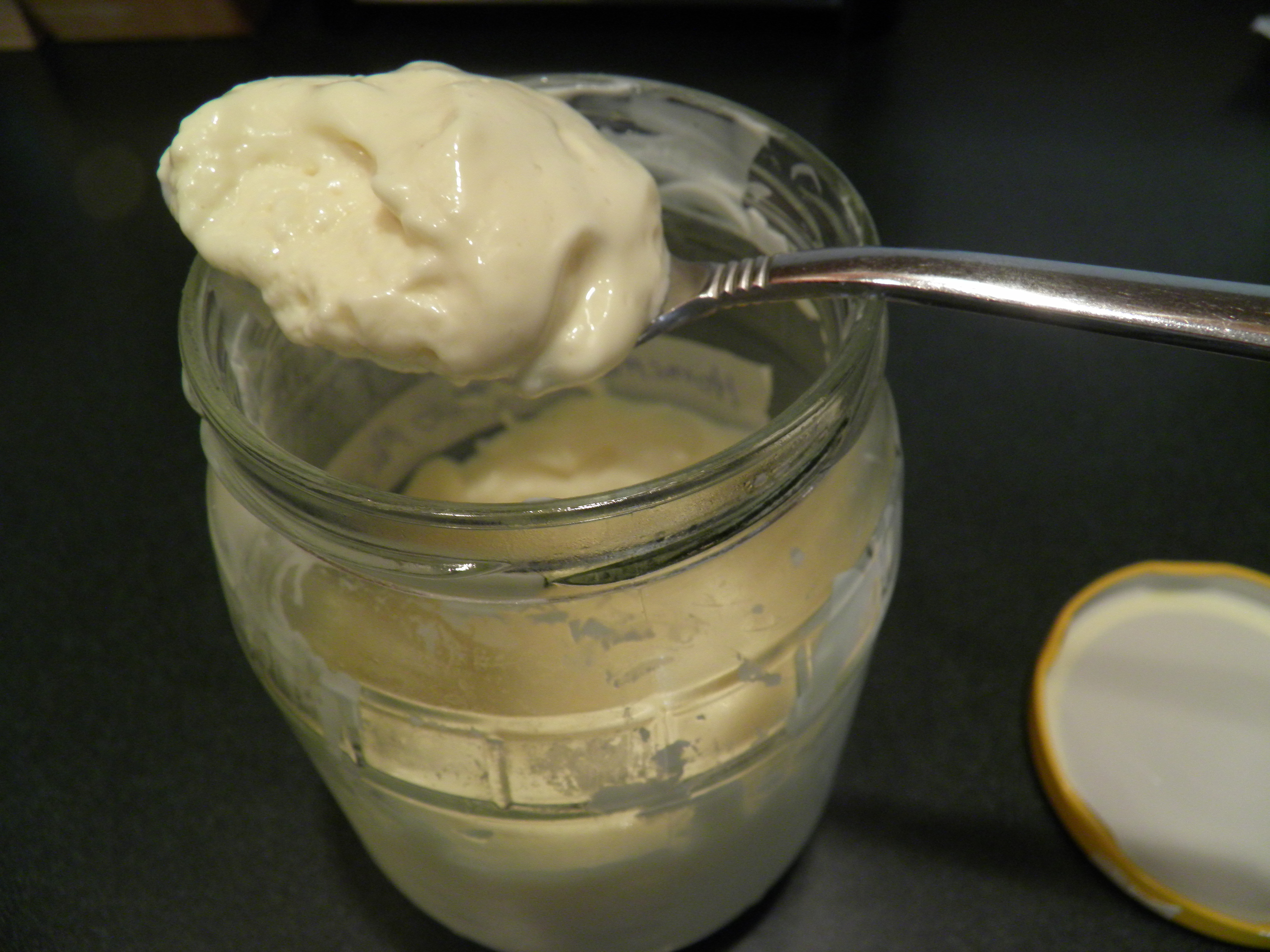 Notes: *Using raw eggs scares some people. There’s a process for pasteurizing eggs at home if you’re one of those folks. I just use the freshest eggs I can buy whenever I have a raw application, and I don’t worry about it. In this case, I think the combination of oil and acids in the vinegar (lemon or lime juice can also be used) and mustard, as well as the salt, makes for a pretty safe combination. And the addition of the **active culture yogurt is also said, according to some, to keep the mayonnaise fresh longer. I found a recipe for coconut oil mayonnaise, not made with a stick blender, but which I would very much like to try with a stick blender, that uses Greek yogurt and whey. Whey is simply what drains from the yogurt and contains the lactobacilli which make milk into yogurt, so adding active culture yogurt has the same effect. ***For oil, you can use any light-tasting oil: extra-light olive oil, grapeseed oil, avocado oil, walnut oil. Strongly flavored oils, like extra virgin olive oil, may cause your mayo to be too strongly flavored. I stay away from canola oil because it is one of the commercial crops sprayed with glyphosate herbicides.
