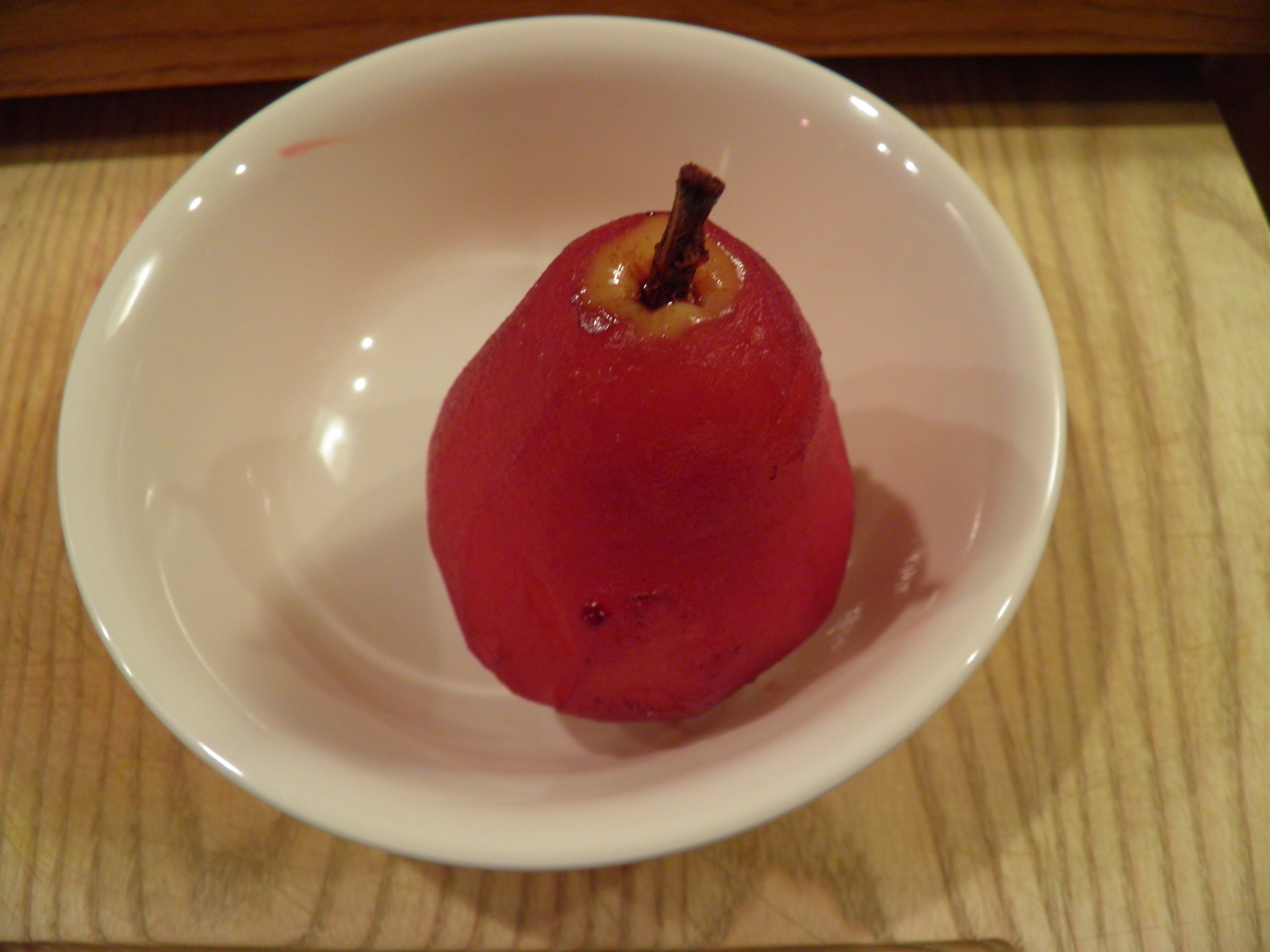 I made Blackberry and Wine Poached Pears for dessert tonight–the first time this winter. I just love this dessert.  Tonight, I gave it a little twist.  To the spice mix, I added a half-teaspoon of mixed peppercorns that I crushed slightly in my marble mortar.  They added an interesting little zing to the pears and the syrup.  Yum!  I hope you’ll try this dessert this winter, if you missed it last year.