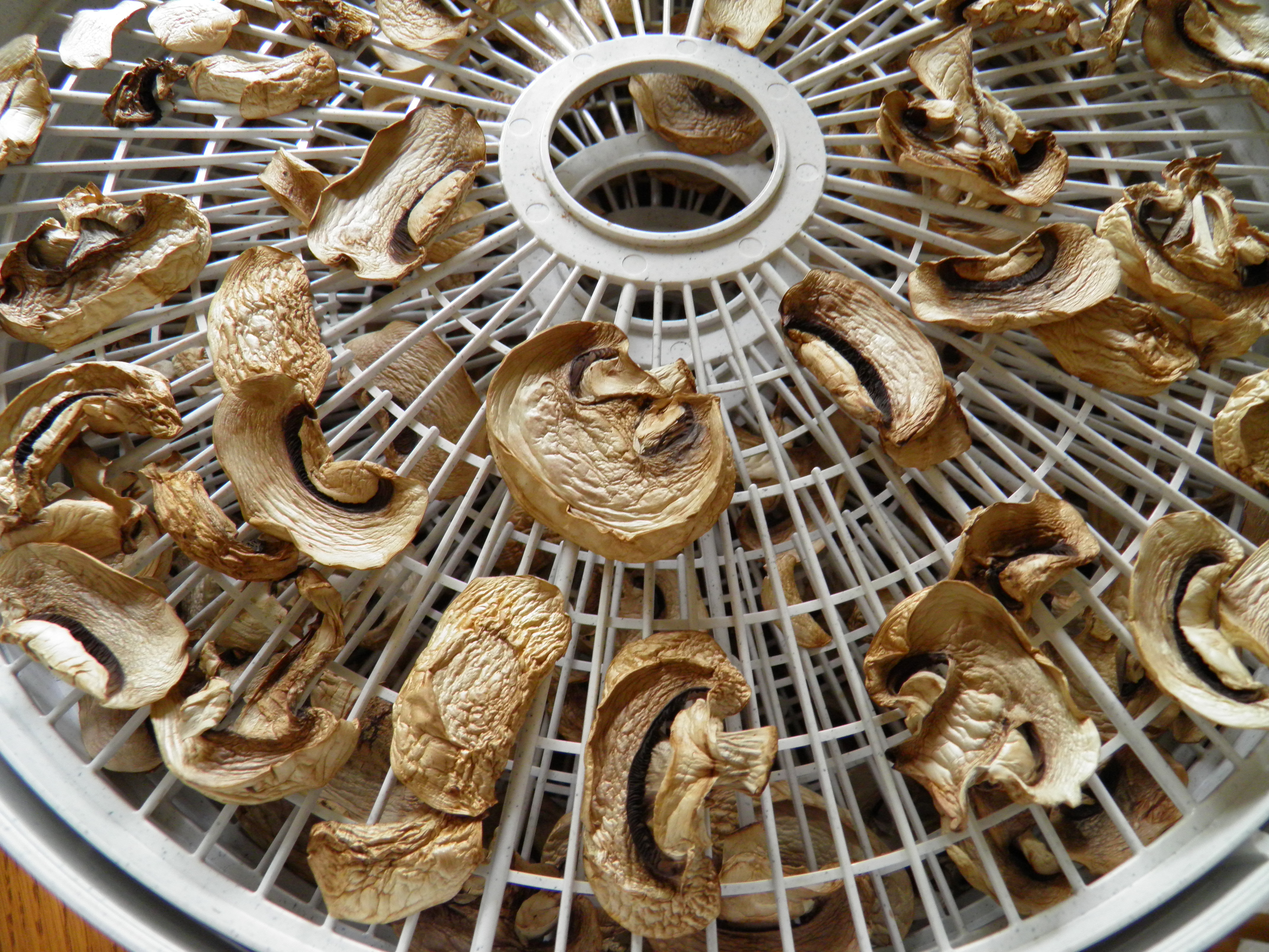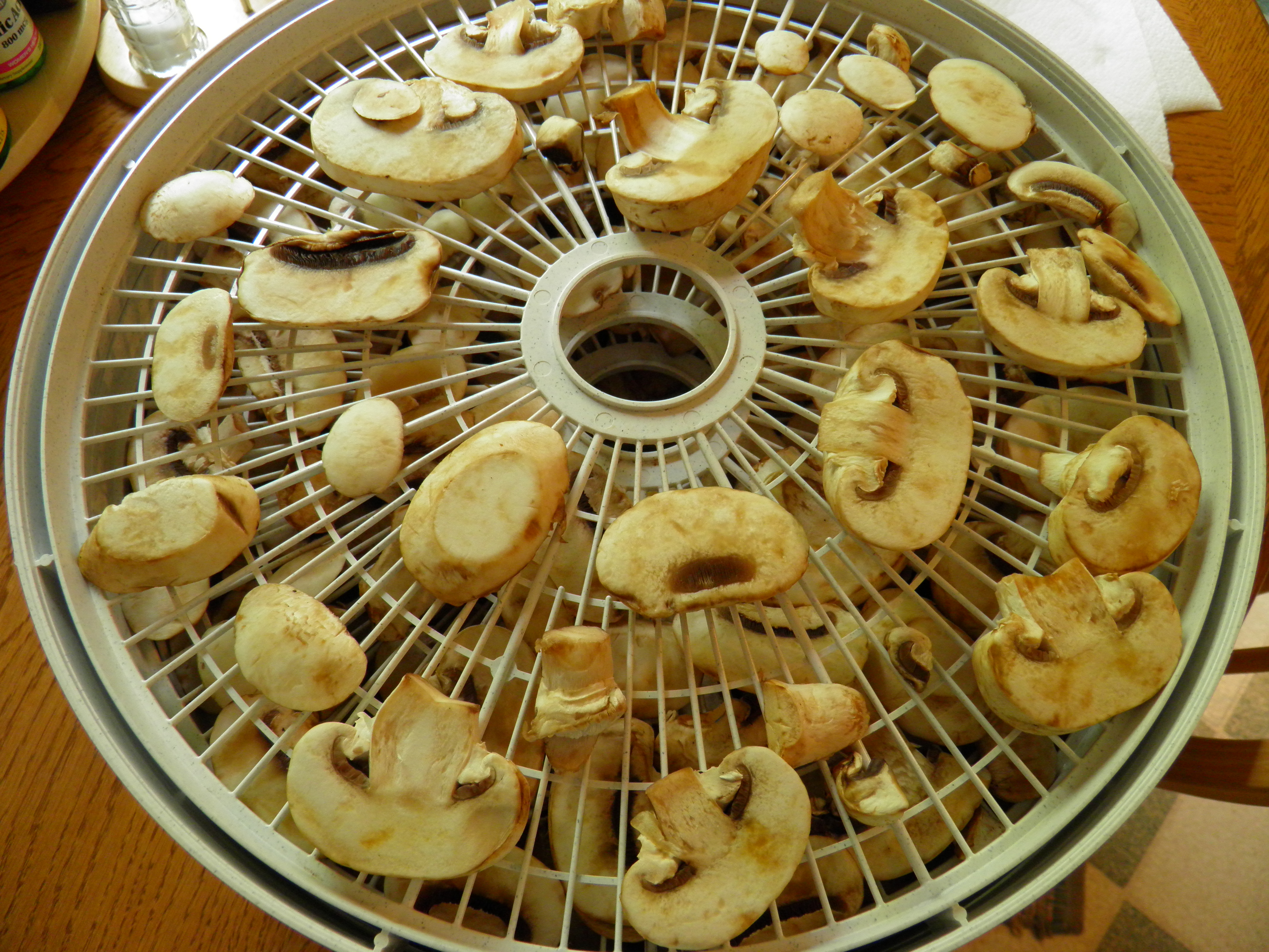 I can be lazy. I admit it. I wait for sliced mushrooms to go on sale, and then I buy lots of them, rinse the residual compost (or whatever—I don’t want to think about it) off them, drain them, and shake them onto the dehydrator trays. Easy peasy.