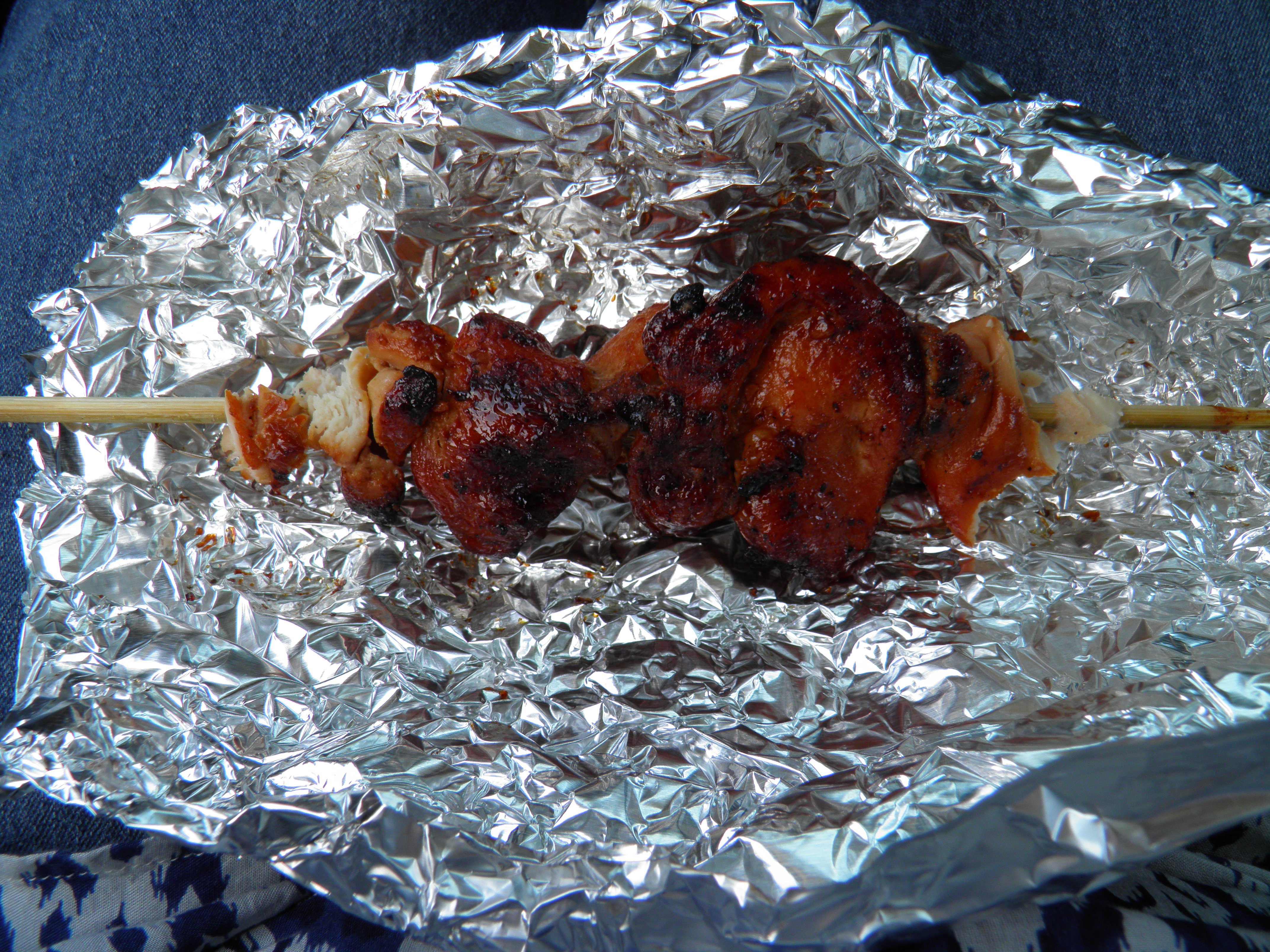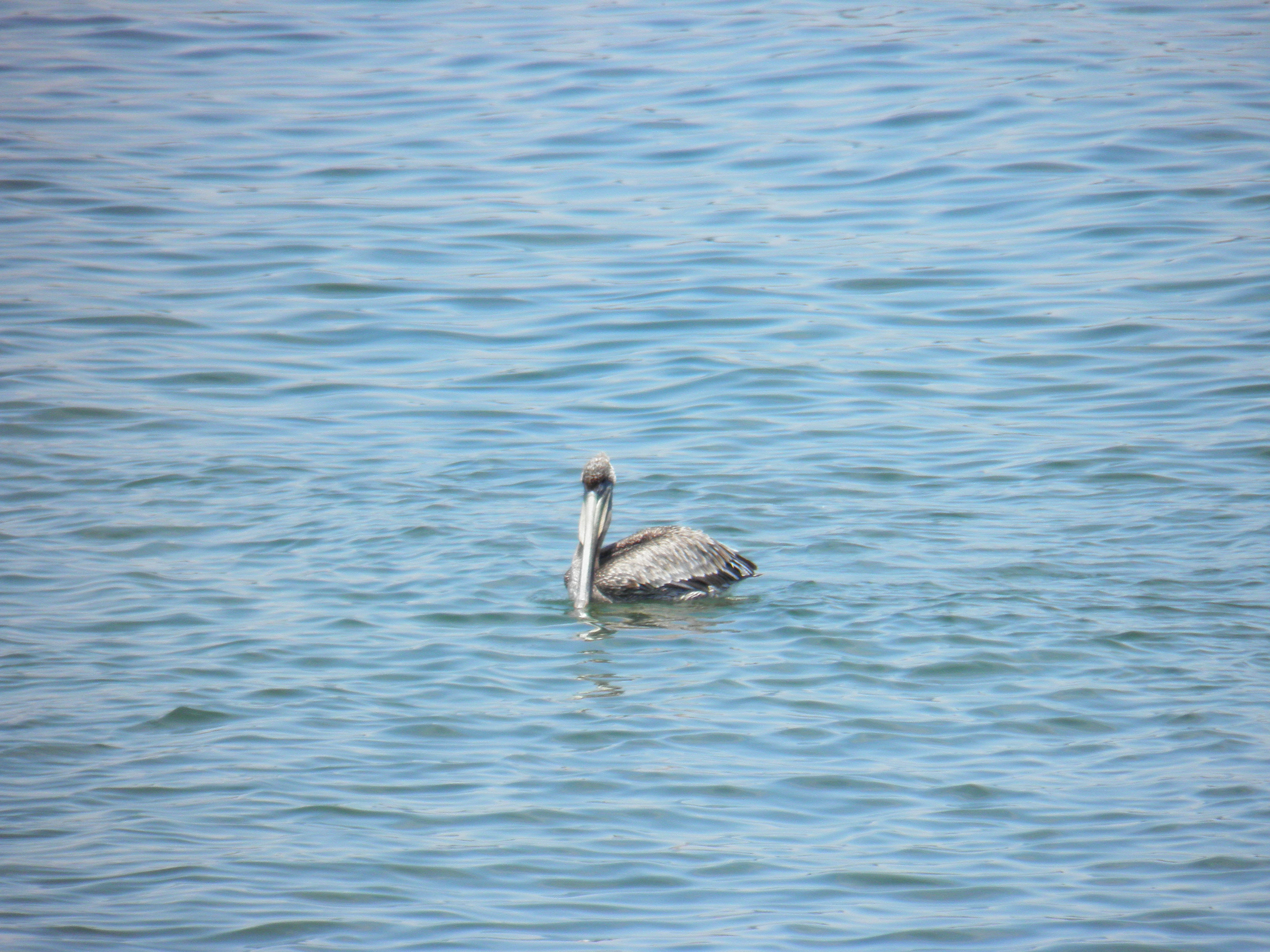 Most of the vendors were packing up, but I did manage to get a barbecued pork stick and some “Gatorade” (full of fruit and what my sister later told me was probably lychee) at the Filipino BBQ place, and boy, was that pork wonderful! I liked the drink too, but it was a little sweet for me. (I drank half of it, and then dumped some lime juice and some sparkling water in it when I got back to the trailer.) I strolled through the jewelry vendors’ booths as they were packing up, thinking how much sister would enjoy looking at the jewelry and wishing she were with me, and then I took my lunch down to the B street pier and ate while watching a brown pelican coasting in the bay. I found a great place for Dennis and me to launch the little kayaks so we can paddle around the protected harbor.