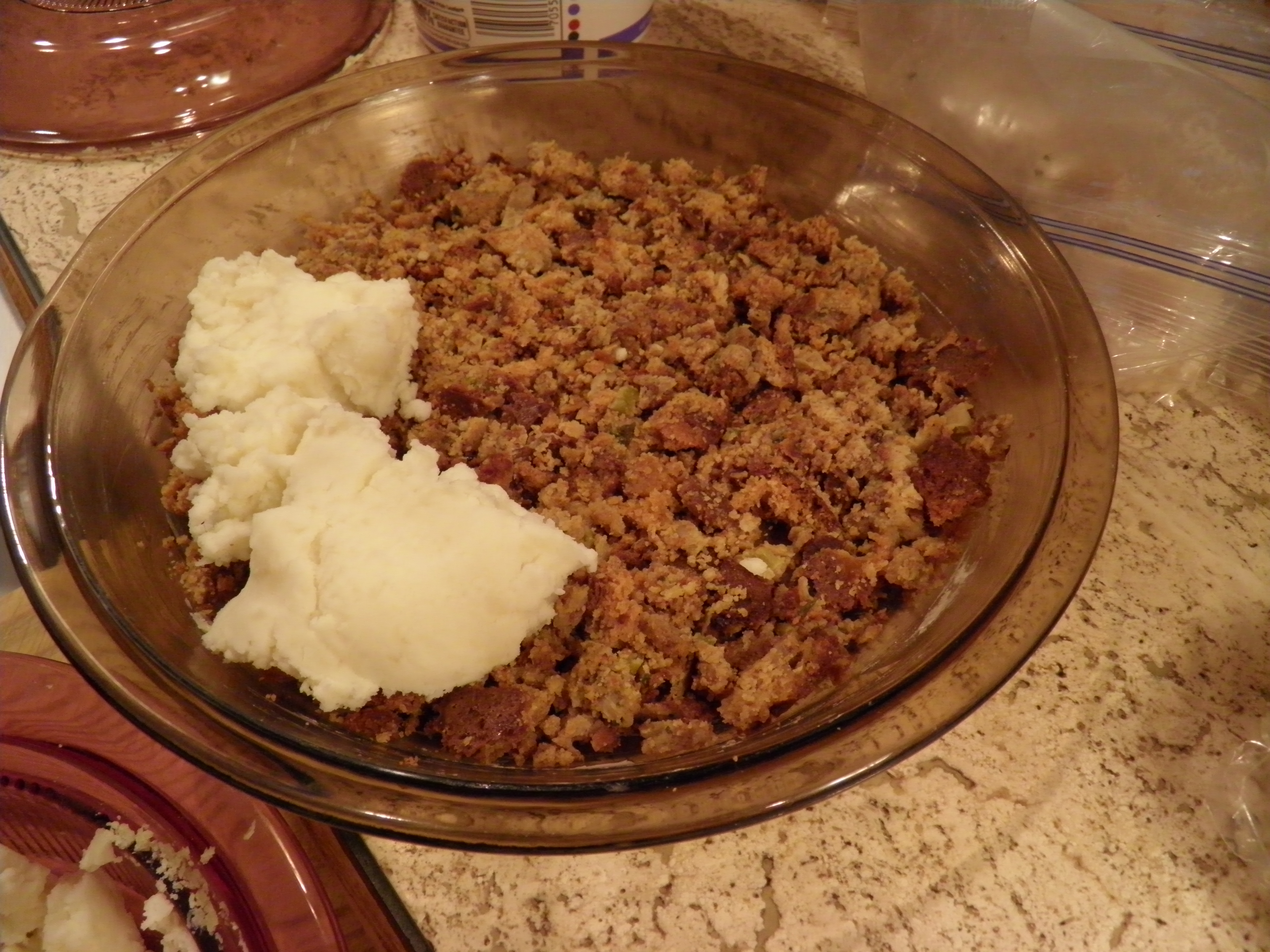1 ½ cups leftover stuffing (link to my gluten-free cornbread stuffing)