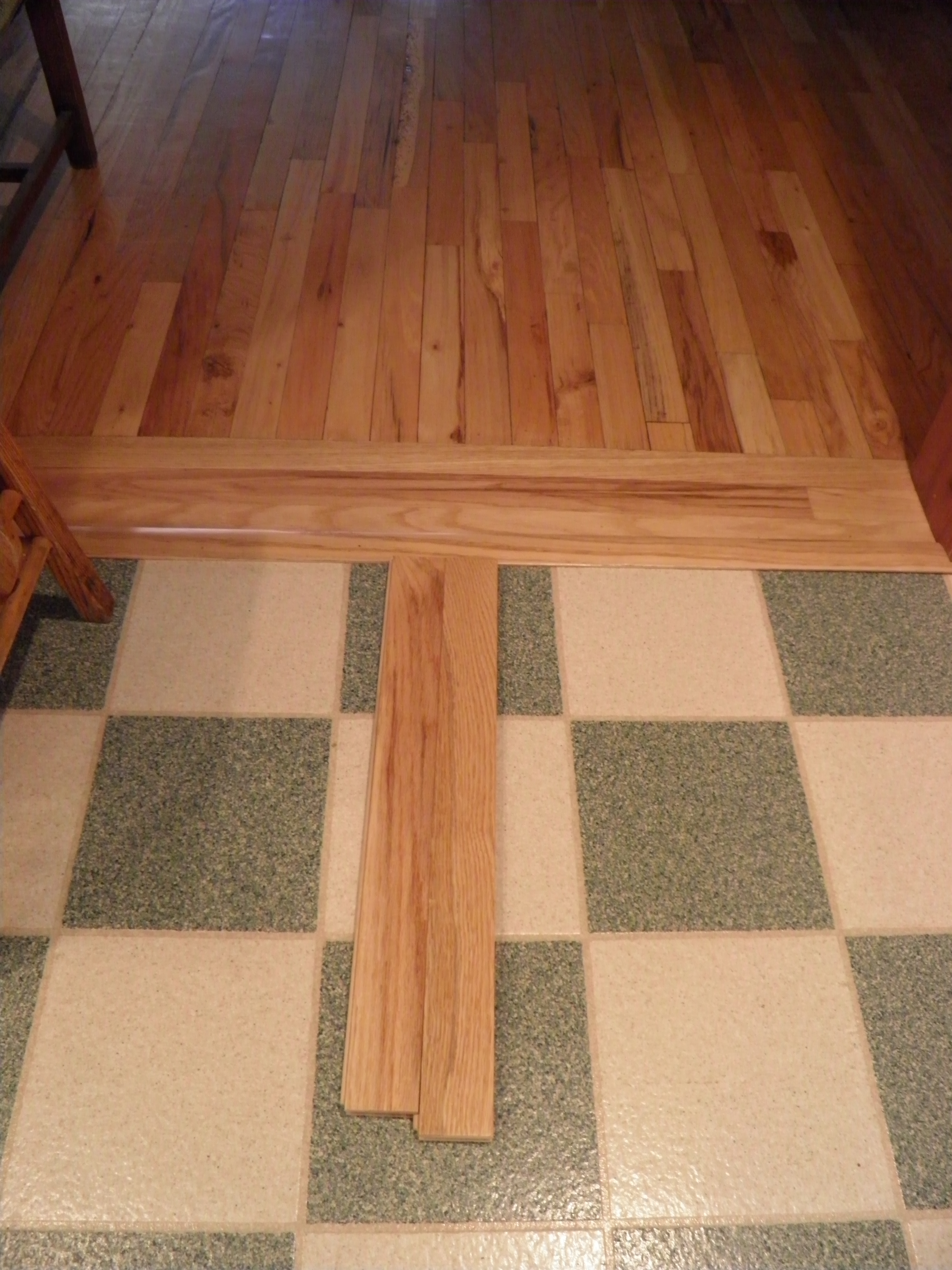 At least I know I’m not making a mistake with the new kitchen floor. It’s going to be beautiful and durable, and it’s going to flow nicely from one room to the other, with a transition in between that will also be dictated by past work. When the kitchen was redone twenty years ago, we widened the opening between kitchen and living room. Originally, there had been a door between the two rooms, and when the kitchen was added on to in the ‘70s, the door was removed but the opening was left the same size. We wanted it widened to allow heat from the stove in the living room to warm the kitchen, because we were taking out the small woodstove that sat in the corner where my kitchen table is today (or was before we moved it to stack the new flooring while it acclimates). Yes, I once had two woodstoves to stoke, not a good thing with a bad back. With a new double-paned window and a new outside door in the kitchen and with the wider opening to the living room allowing heat to transfer, we didn’t need the little woodstove, and we did need the space for a kitchen table that would seat two adults and two tall teenagers.