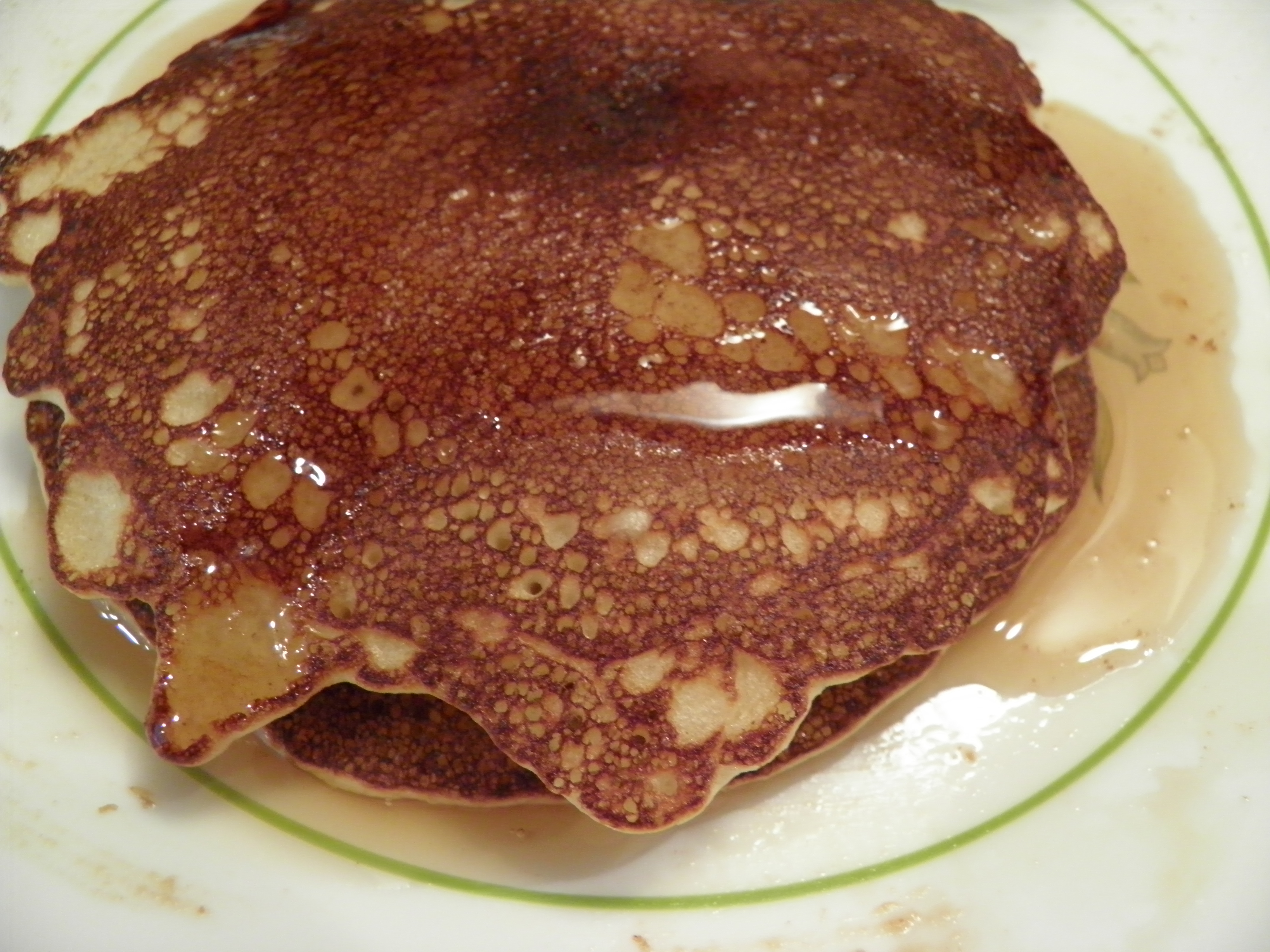I often make pancakes on the weekends. I use a gluten-free, bean-based flour, and Dennis loves them. He usually pours maple syrup on his.