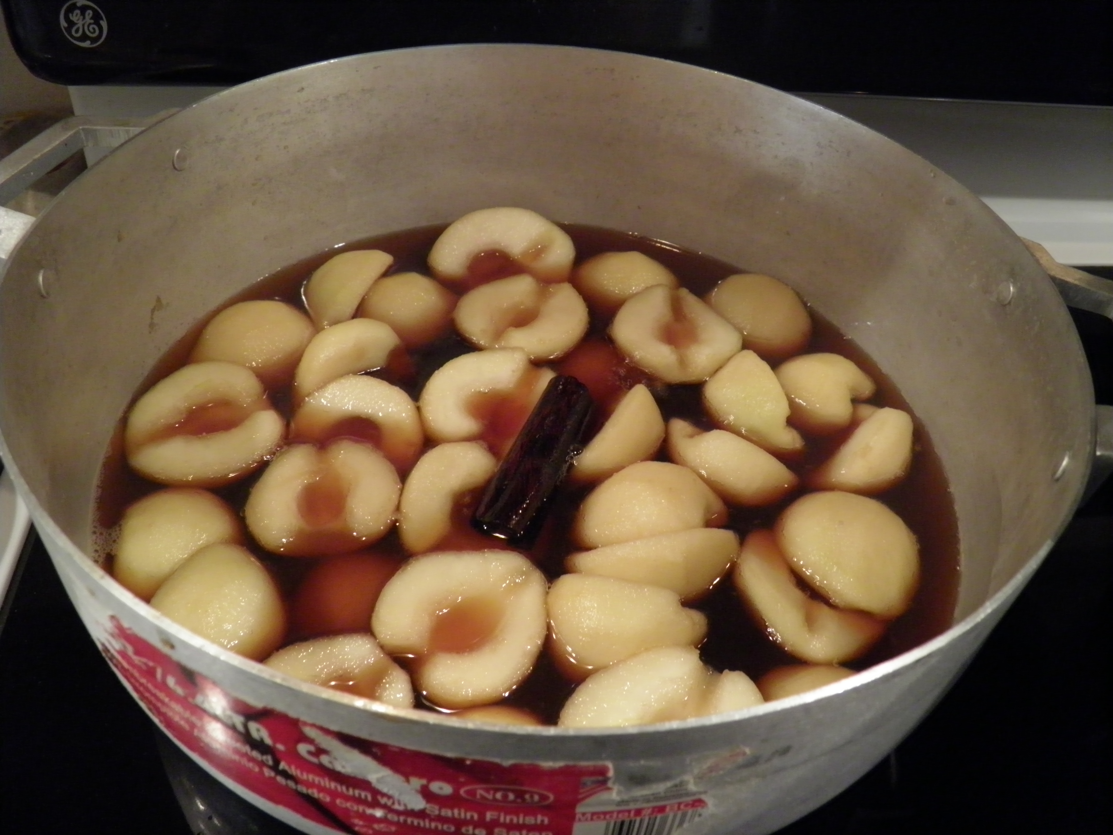 Although my mother never canned her pears with cinnamon candies, I remember eating some that someone else had canned. They were a pretty, rosy color, but awfully sweet. I’ve never been fond of overly-sweet, and I’ve become less so the older I get. I usually can my pears in a light syrup, and a couple of years ago, I tried a recipe I found online, pears in a brown sugar syrup with ginger matchsticks. (You can find that recipe, and several others that I still like very much, on my Pears, Pears, Pears post.) Gingered pears sound good, right? Well, they were, the first year. Typically, home-canned fruit is good for years (and yes, I’ve eaten fruit ten years in the jar that still tasted good, so I know whereof I speak). But after the first year with the gingered pears, I found that the ginger didn’t taste good, and I didn’t like the flavor of the pears all that much either. But I really liked the brown sugar syrup for a couple of reasons that I’ll go into below.