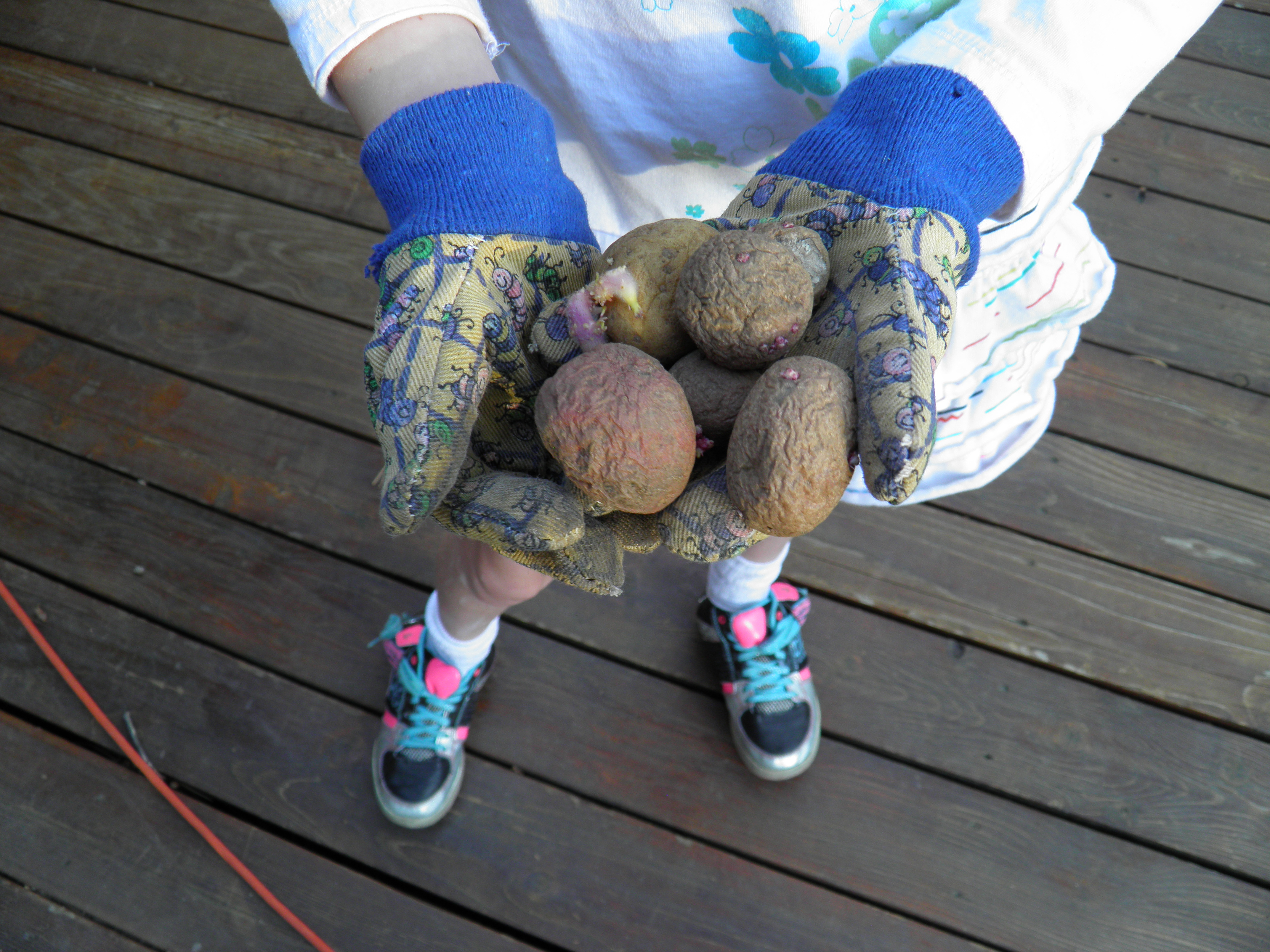 Kaedynce and Bryce have helped me plant potatoes each spring, and harvest them each fall, since they could walk. Kaedynce reminds Bryce, “Don’t pick them up by the sprouts,” and Bryce reminds Kaedynce, “Don’t put them too close together, and make sure the sprouts are pointing up.” They are expert potato planters by now, and I regret not getting pictures of them doing it again this year. By that time the photographer in the family, Grandpa, was getting out the hot dogs and marshmallows for our reward for a job well done, a wienie roast at the fire pit.
